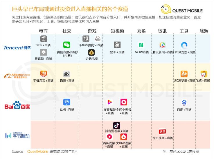 此外,阿里巴巴则在淘宝、飞猪等插入直播,百度也在做好看视频、全民小视频。