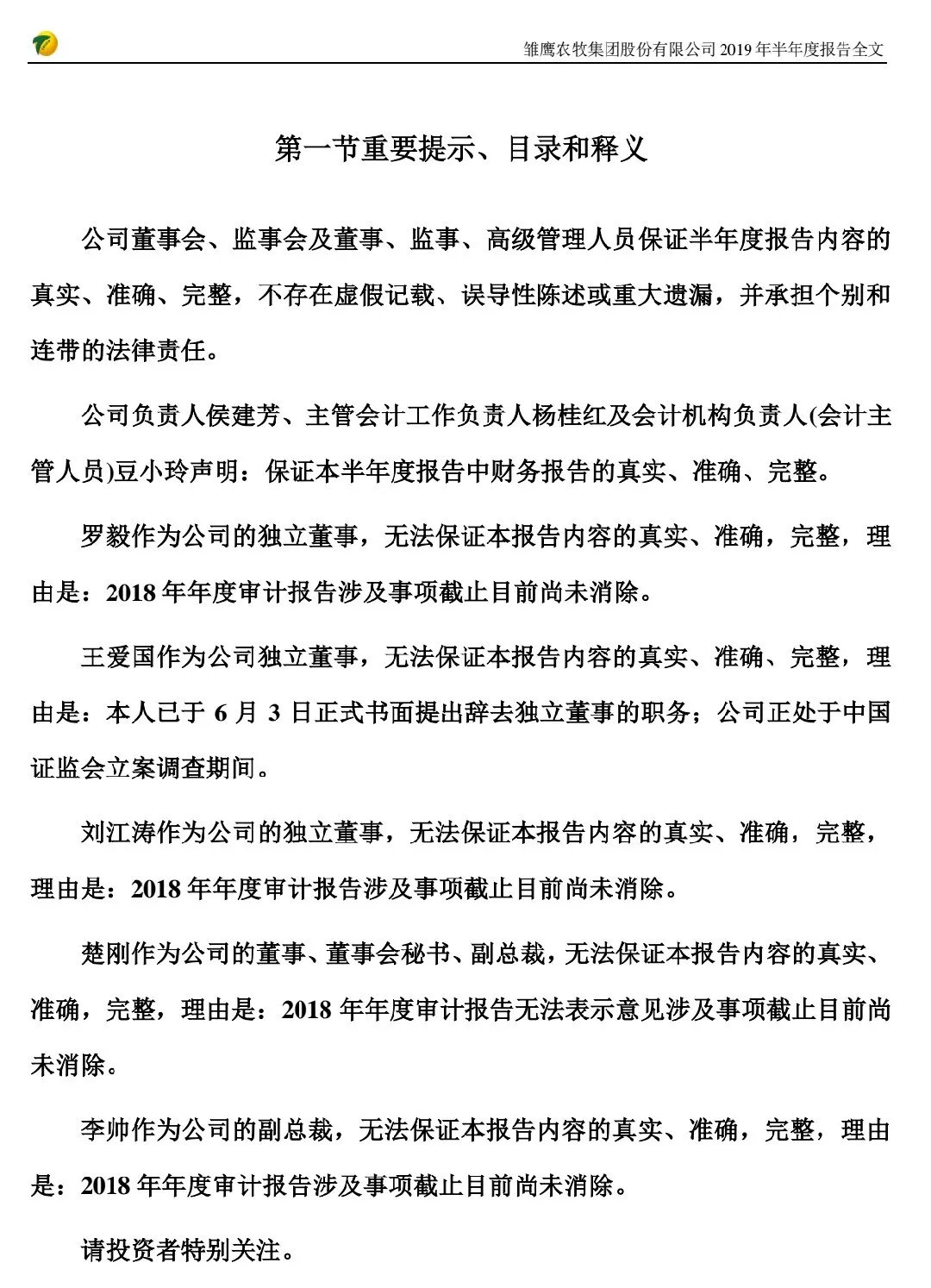 公司实际控制人侯建芳、主管会计工作负责人杨桂红及会计机构负责人豆小玲保证这份半年报的真实性。董秘楚刚、副总裁李帅及三名独董均表示无法保证这份财报真实性。
