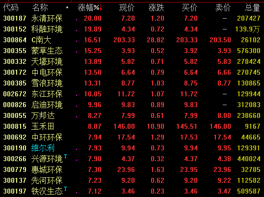 环保板块26日盘中大幅拉升,截至发稿,永清环保、科融环境涨幅达20%封涨停,蒙草生态、天壕环境、中电环保、雪浪环境,东江环保等涨幅超10%,启迪环境涨停。