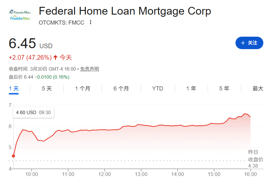 美国政府支持的房地产金融公司房利美和房地美周一股价飙升,其在场外交易市场的股票分别上涨了51.23%和47.26%,均创下2025年5月以来的最高单日涨幅纪录。