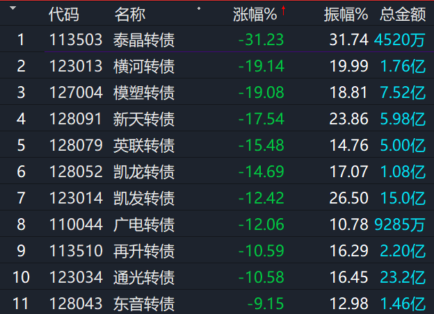 近期备受关注的可转债市场,上午再次出现极端分化一幕。哈尔转债上午大涨37.95%,而泰晶转债下跌31.23%,此外还有多只转债跌幅超10%。