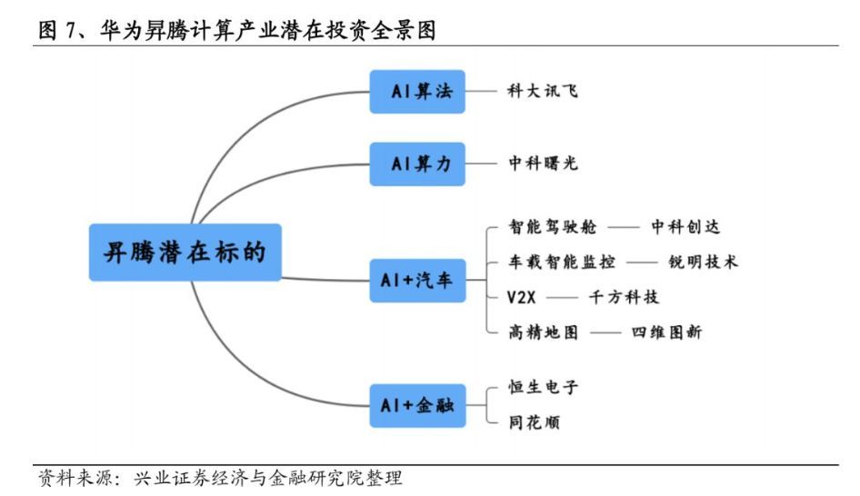 其中,华为鲲鹏主打以信创为基础的国产化计算产业市场,华为昇腾主打AI计算产业市场。兴业证券分别以鲲鹏、昇腾为主线,对计算机行业核心投资机会进行梳理,核心受益标的如下: