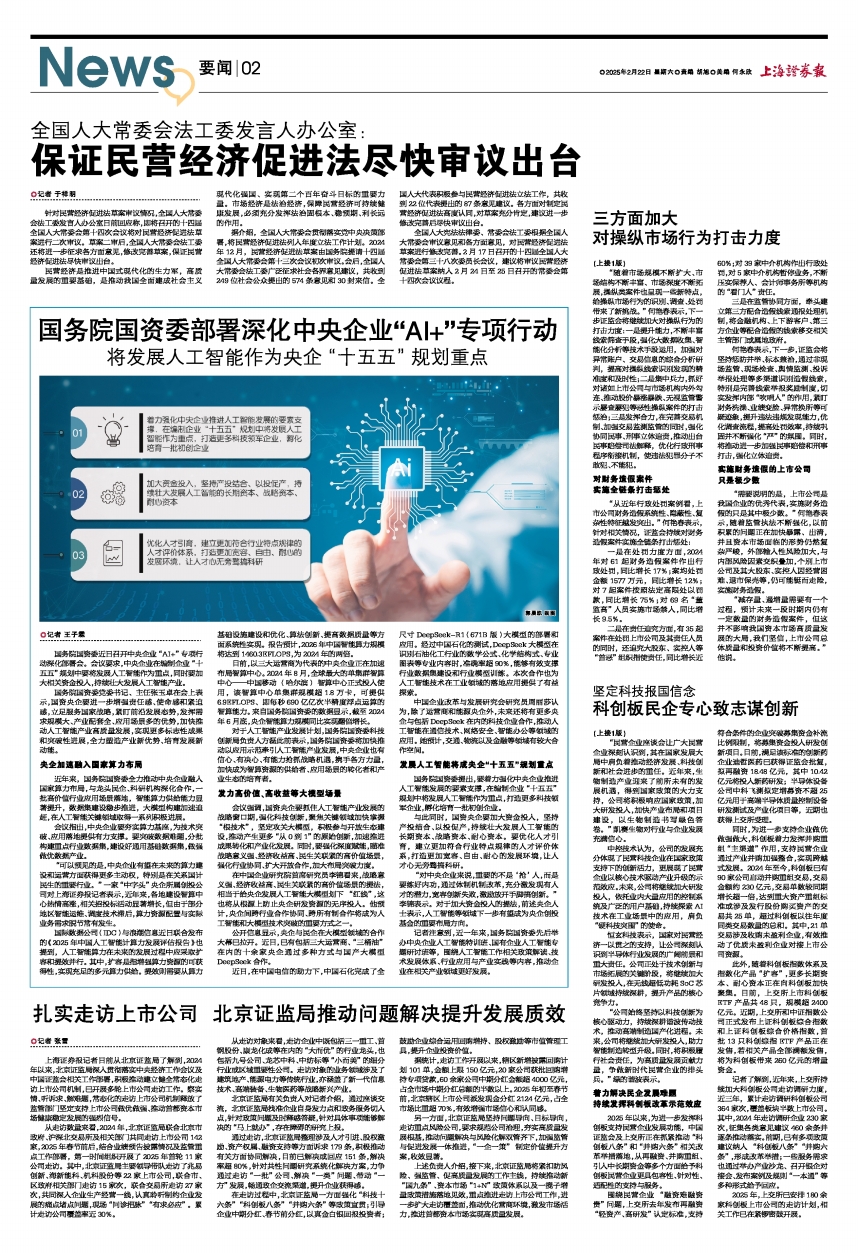 国务院国资委部署深化中央企业“AI+”专项行动 将发展人工智能作为央企“十五五”规划重点