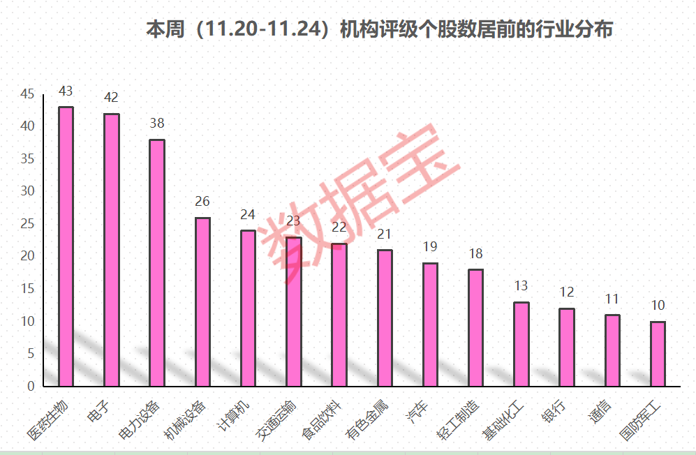 证券时报·数据宝统计,11月20日至11月24日,61家机构合计进行了504次评级,共计416只个股获“买入型”评级(包括买入、增持、强烈推荐、推荐)。