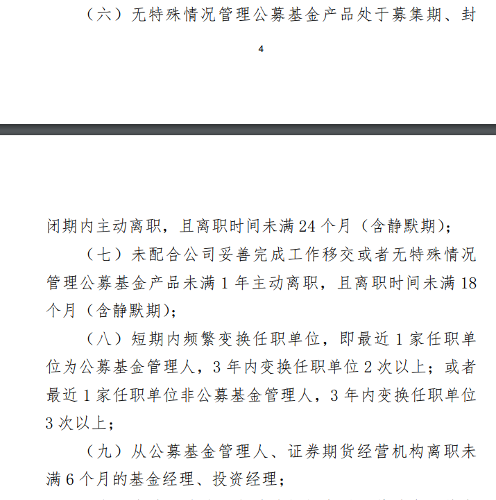 在《注册登记规则》中,对于基金经理的申请注册则提出了非常细致的要求。其中,明确提出了以下几种离职情况不得给予注册: