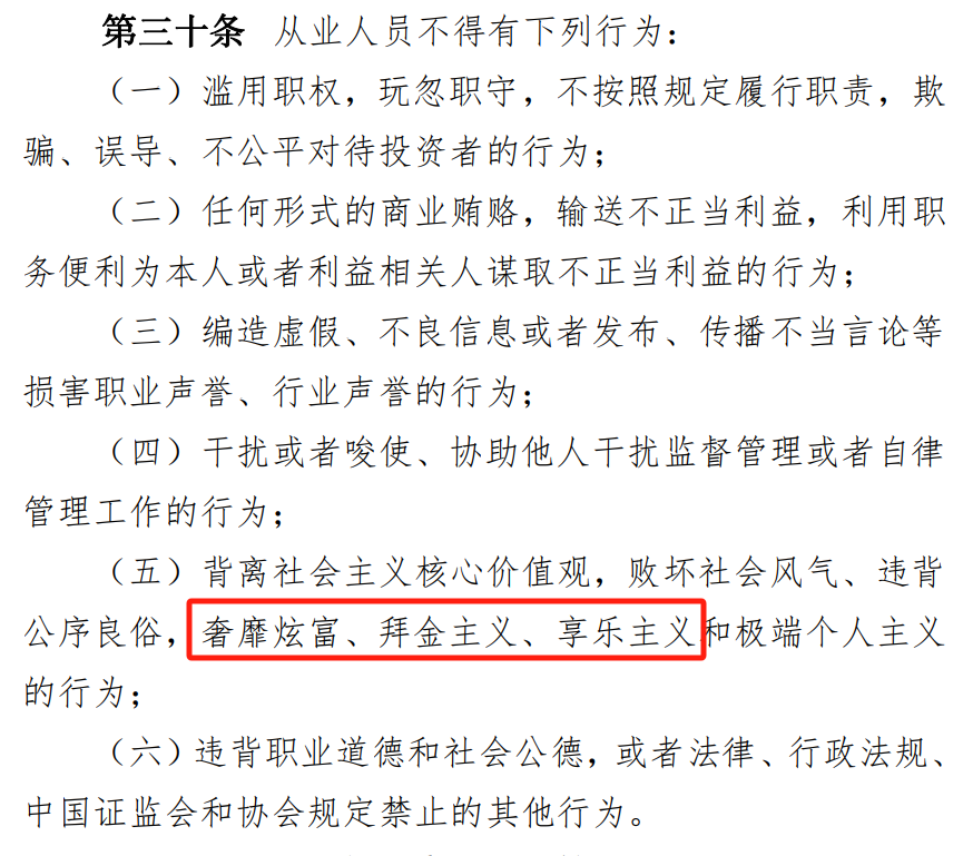 具体来看,对于基金从业人员不得有六项行为: