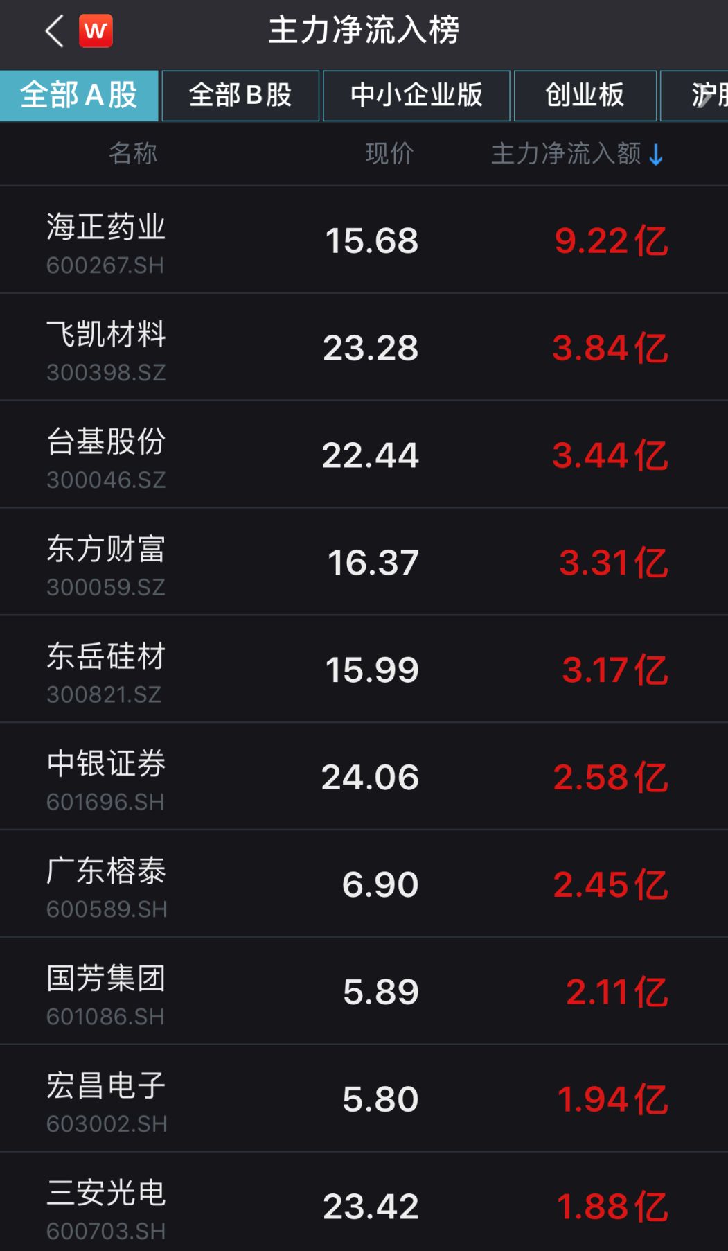 涨幅排行榜
