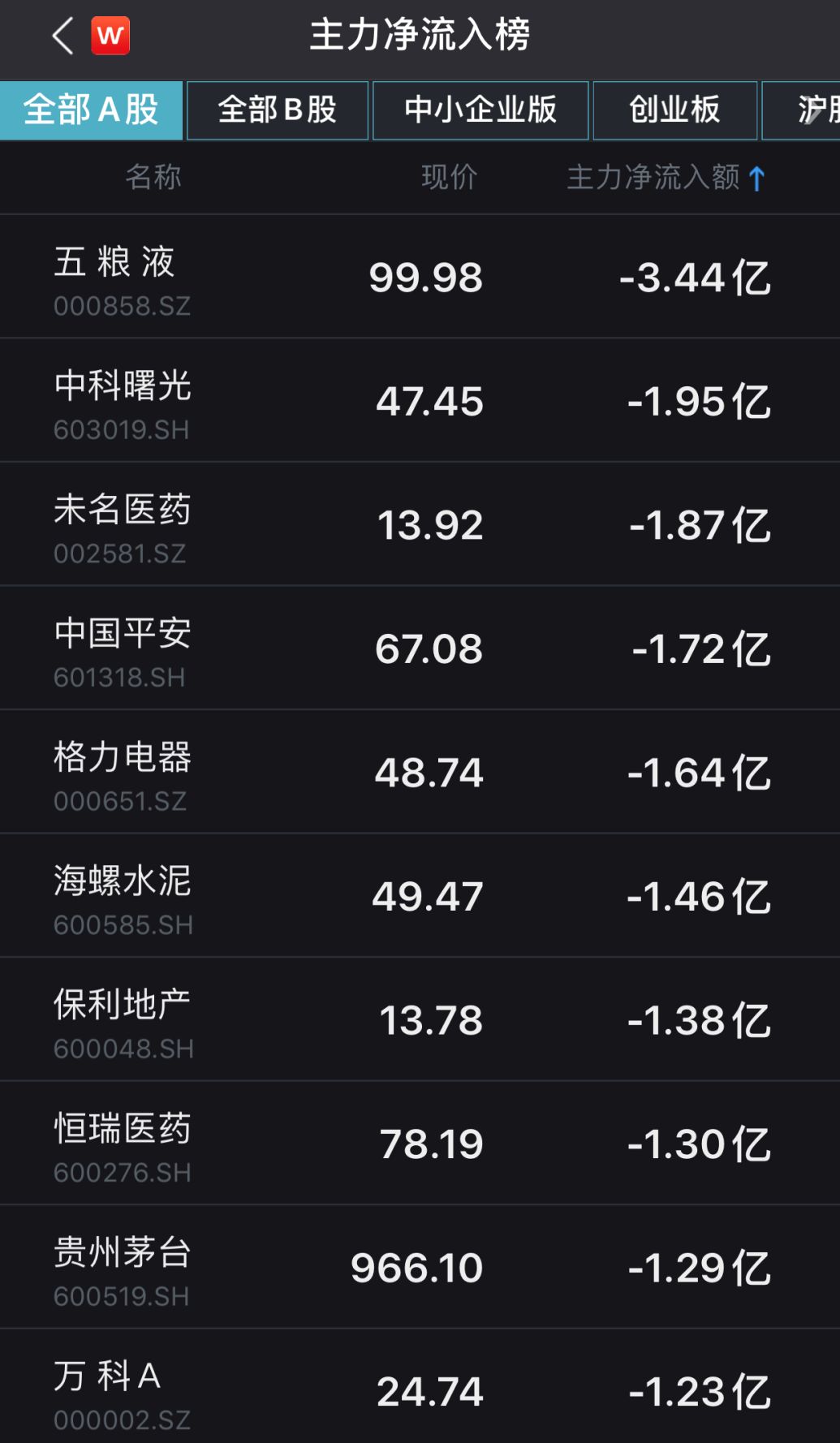 资金流向方面,五粮液、中国平安、格力电器、海螺水泥、保利地产、恒瑞医药、贵州茅台、万科A等传蓝筹股均呈现大额净流出状态。