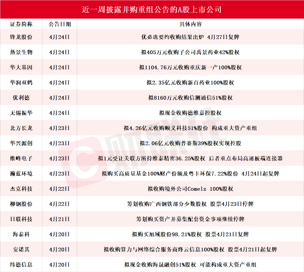 龙头2连板!本周披露并购重组进展的A股名单一览