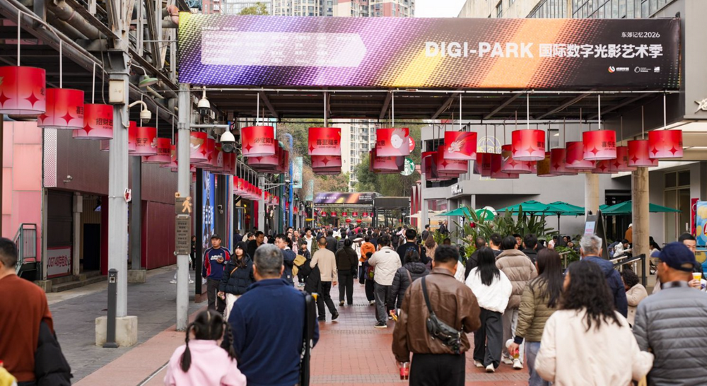 数字文创在新春给城市增添了不同的文艺体验,今年春节期间,“2026 DIGI-PARK国际数字光影艺术周”在东郊记忆举行,融合数字艺术、光影涂鸦、Mapping、音画交互、声光电装置等多元形式,覆盖东郊记忆成都舞台、工业横街、涂鸦墙、数字橱窗等15+公共户外场域。
