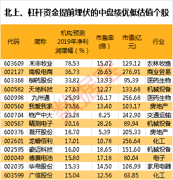 从机构预测今年净利润增幅来看,4家机构一致预测合丰牧业今年净利润增幅有望超75%,最新市值不足130亿元,估值15倍,该公司主营饲料业务,在养殖方面,鸡产业、猪产业都有涉及。南极电商、柳药股份今年净利润增幅有望超30%。家电股华帝电器是这14股中唯一的家电股,年内净利润有望增长15%以上。