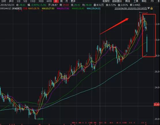 数据显示,去年以来,宋城演艺因业绩表现不错持续受到资金关注,股价也从去年6月20元左右一路上涨至最高33元附近,区间涨幅高达65%以上。如今旅游板块大跌,宋城演艺首当其中,追高资金惨被闷杀。