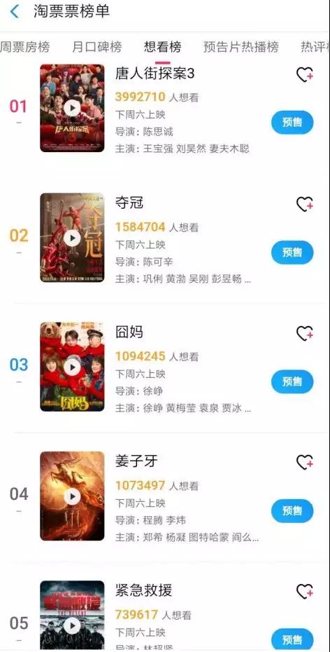 值得注意的是,从关注的期待值看,虽然《唐人街探案3》的数据遥遥领先其他影片,但是相关的其他影片则并没有迎来预期的高火热。