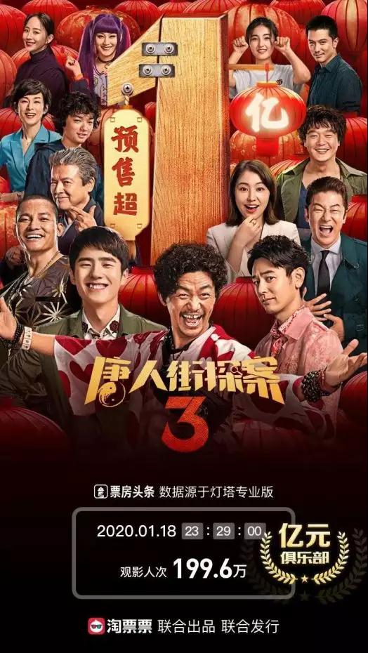 目前关注最期待的莫过于《唐人街探案3》。据灯塔专业版统计,开始预售后仅23个小时,《唐人街探案3》的预售票房即突破1亿元,创下了华语电影预售史上最快破亿的纪录。