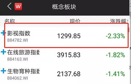 1月20日,影视指数开盘大幅低开,盘中跌幅一度触及近4%,场内资金密集出逃。截至下午两点三十分左右,影视股大跌2.33% ,成为当日领跌概念板块。