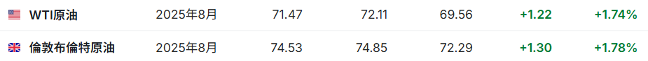 3. 截至发稿,WTI原油涨1.74%,报71.47美元/桶。布伦特原油涨1.78%,报74.53美元/桶。