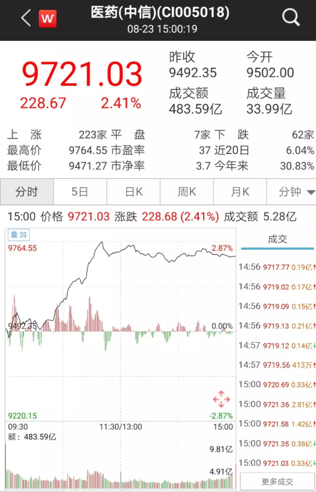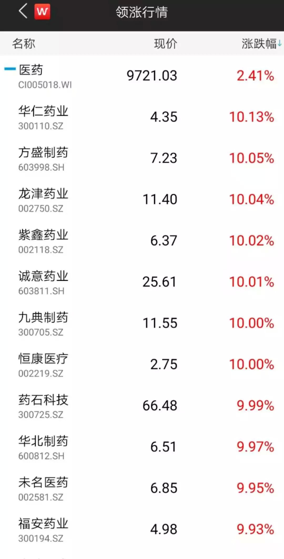 受这次调整的影响,本周五(8月23日)医药股表现十分出众。当日中信一级行业指数中,医药指数上涨2.41%,涨幅居于首位,且远高于排名第二的银行指数,后者上涨1.15%。个股方面,华仁药业、方盛制药、龙津药业、紫鑫药业、诚意药业等11只股票涨停,另有12只股票涨幅超过5%,37只股票涨幅在3%—5%。