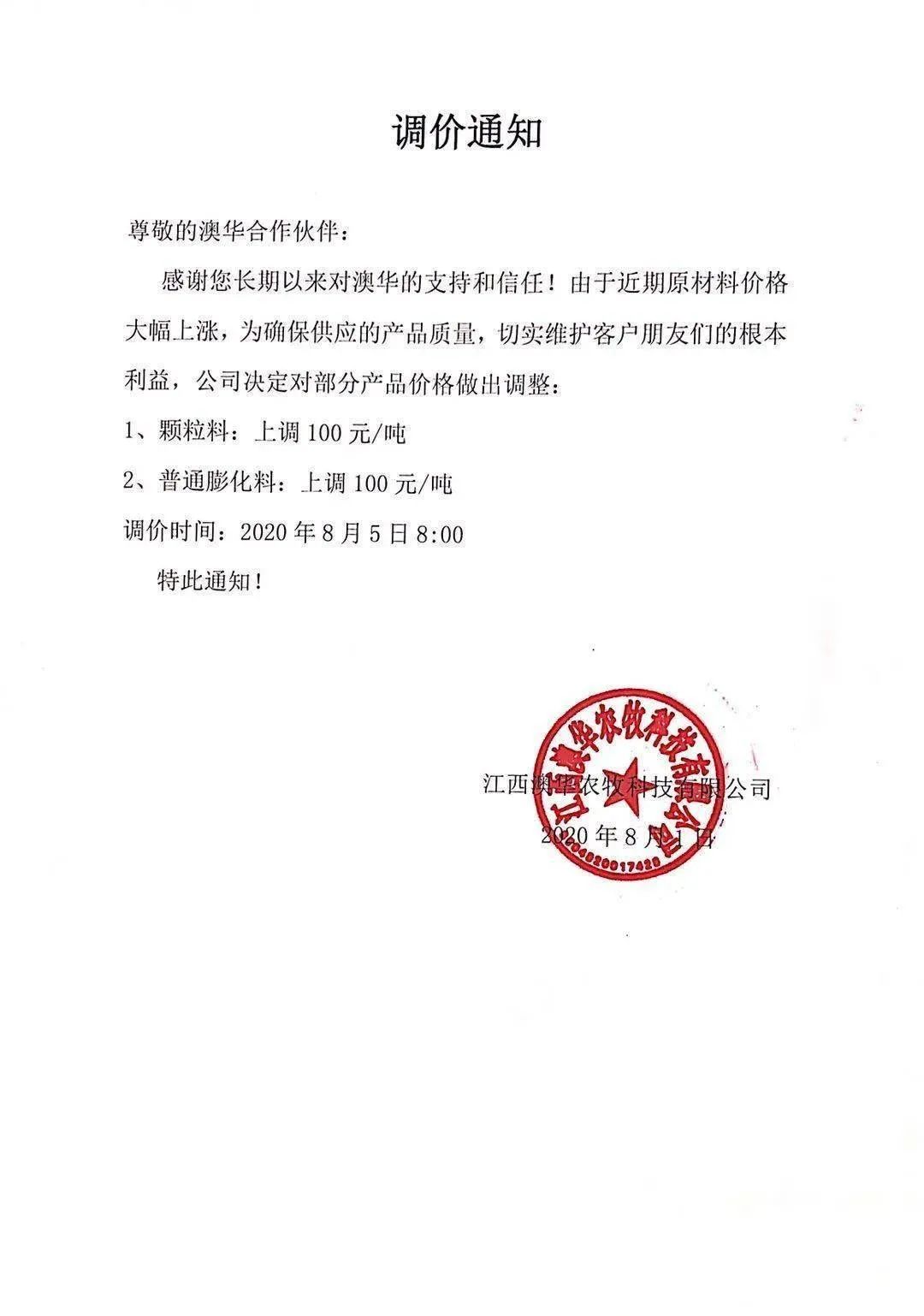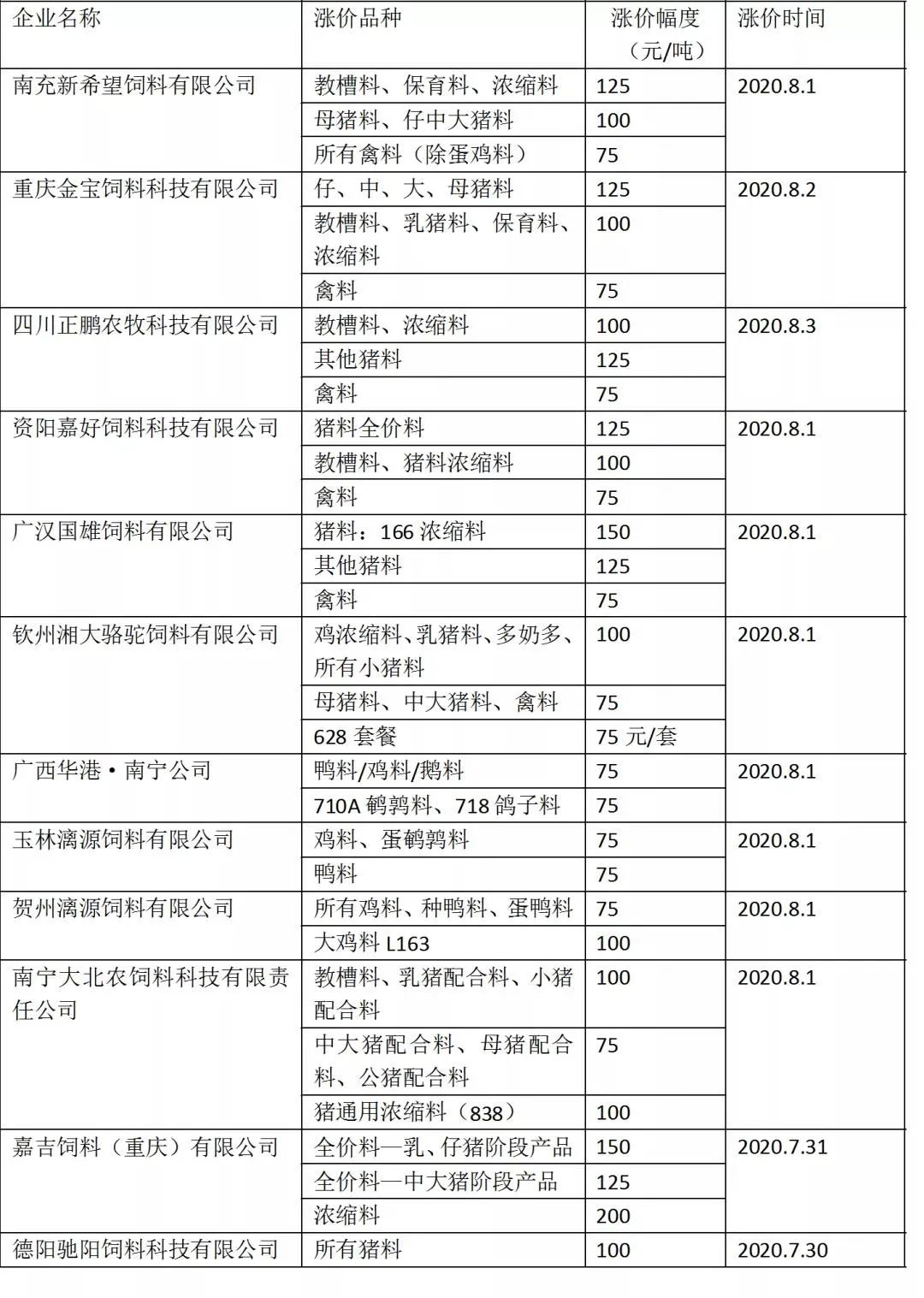 8月5日,新一轮饲料涨潮来袭!新希望、大北农、通威等多家饲企宣布涨价
