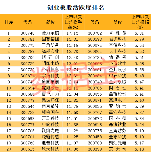 创业板十大活跃股名单