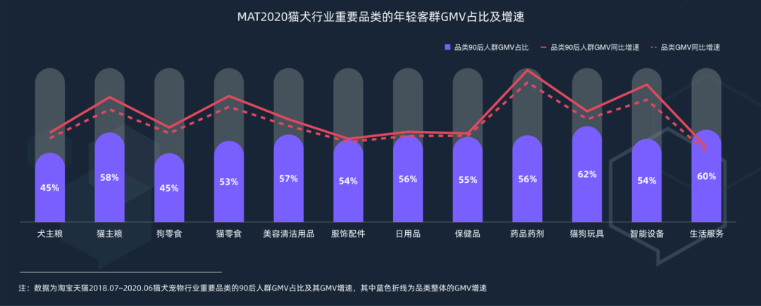 亚宠展报告显示,过去一年,宠物行业线上销售额超过300亿,天猫、淘宝占比超过七成,疫情过后快速恢复并呈现加速增长态势,天猫平台宠物品牌数量同比增速超过60%。其中,宠物猫相关消费增长是狗的两倍,增速达37%。