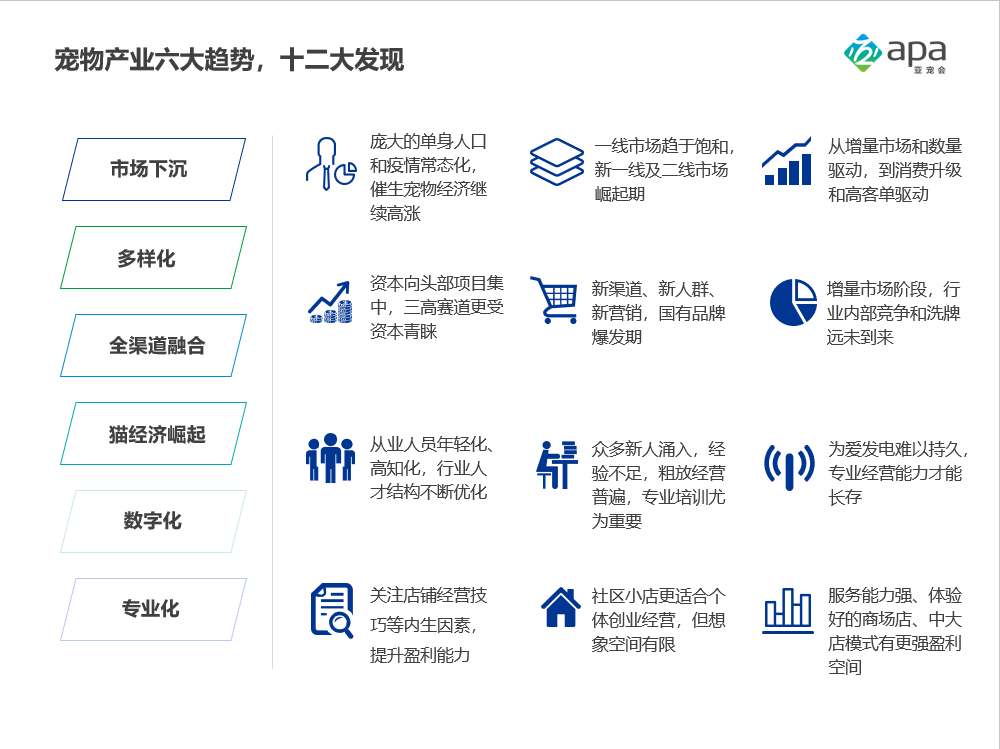 报告还显示了宠物产业今年以来的趋势。疫情下,世界各地开启社区封闭式管理及安全社交距离,豢养宠物因成为人们获得生活乐趣的重要方式,同时,至今为止未发现动物感染的有效证据。