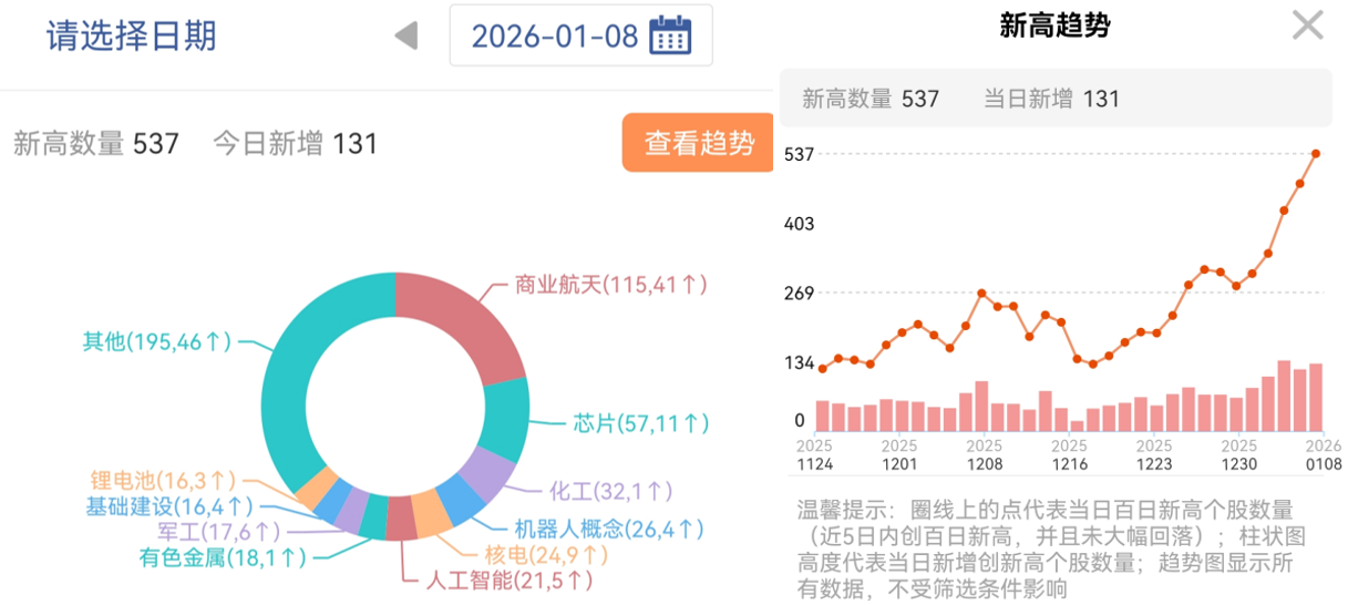 从百日新高去看,板块新高数量前4:商业航天>芯片>化工>机器人