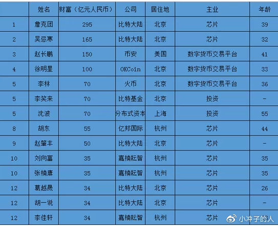 根据胡润研究院去年底发布的《2018胡润区块链富豪榜》,詹克团、吴忌寒分别以295亿元和165亿元的身家,分别位列富豪榜第一和第二。