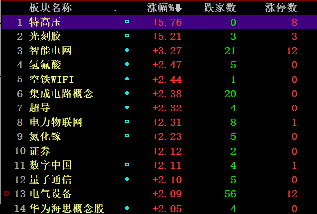 中兴通讯早盘一度跌停,短暂压制科技股做多情绪,光刻胶板块处领涨地位。