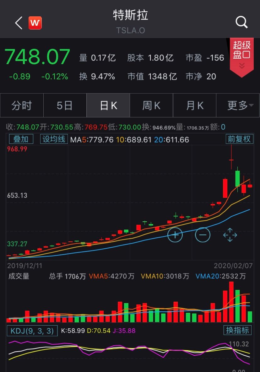 2月3日,特斯拉上涨19.9%,创下每股780美元的纪录。2月4日,特斯拉再度上涨13.73%,报887.06美元,市值直逼1600亿美元。