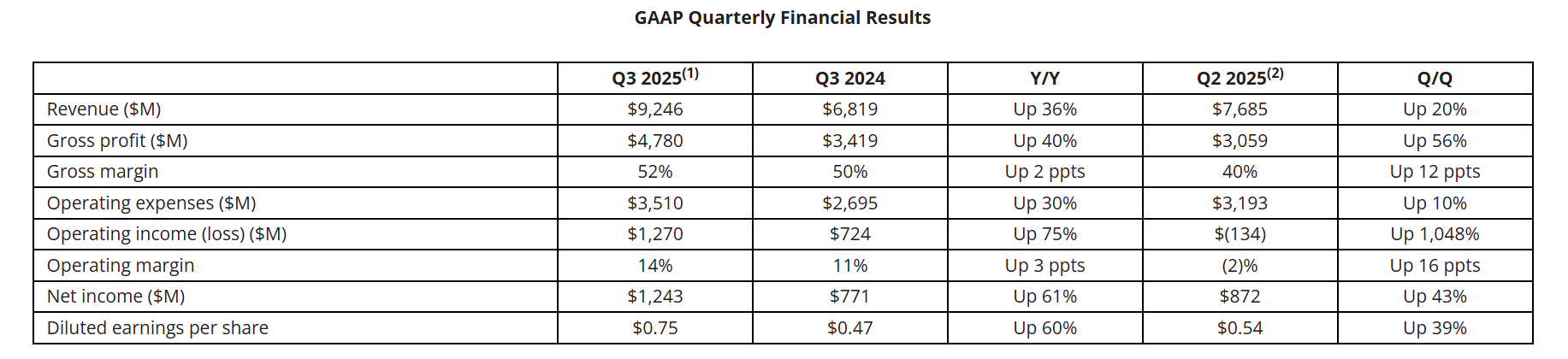 AMD董事长兼首席执行官苏姿丰博士表示:“我们本季度业绩斐然,营收和盈利均创历史新高,这反映了市场对我们高性能EPYC和Ryzen处理器以及Instinct AI加速器的广泛需求。我们第三季度创纪录的业绩以及强劲的第四季度预期,标志着我们的增长轨迹明显提升。随着计算业务不断提升,数据中心AI业务快速成长,将显著公司推动营收和盈利增长。”