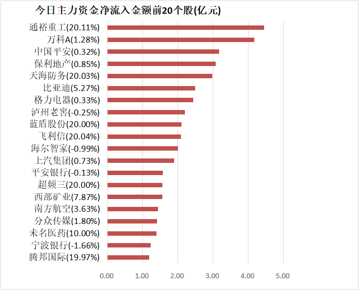 5、通裕重工主力资金净流入4.44亿元居首
