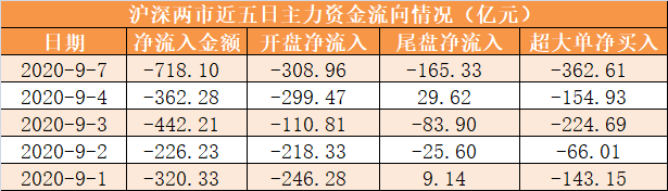 今日沪深两市主力资金开盘净流出308.96亿元,尾盘净流出165.33亿元,两市全天资金净流出718.1亿元。