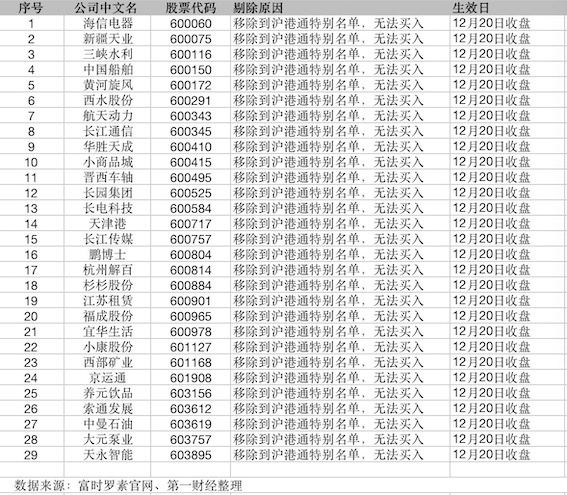 根据第一财经记者整理,富时罗素剔除的29只A股名单如下: