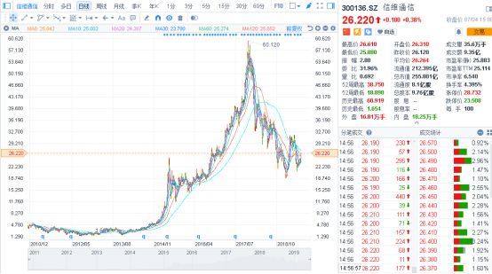 4G时代,信维通信创造过4年30倍的神话,而那几年大盘还是熊市,趴在地上不动呢。这里,再来欣赏一下信维通信的股价走势图: