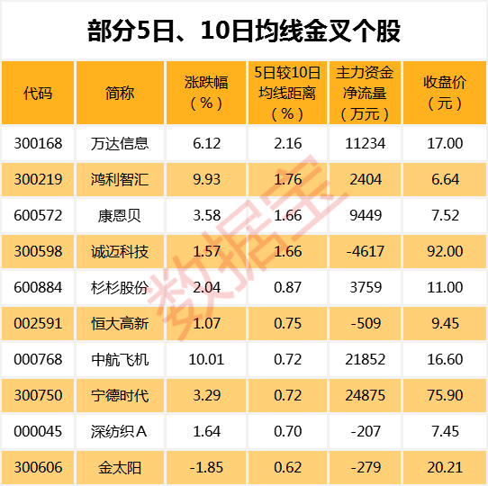 最新数据显示,有63只A股的5日均线主动上穿10日均线,其中万达信息(17.000, 0.98, 6.12%)、鸿利智汇(6.640, 0.60, 9.93%)、康恩贝(7.520, 0.26, 3.58%)等个股的5日均线较10日均线距离最大,分别达2.16%、1.76%、1.66%。