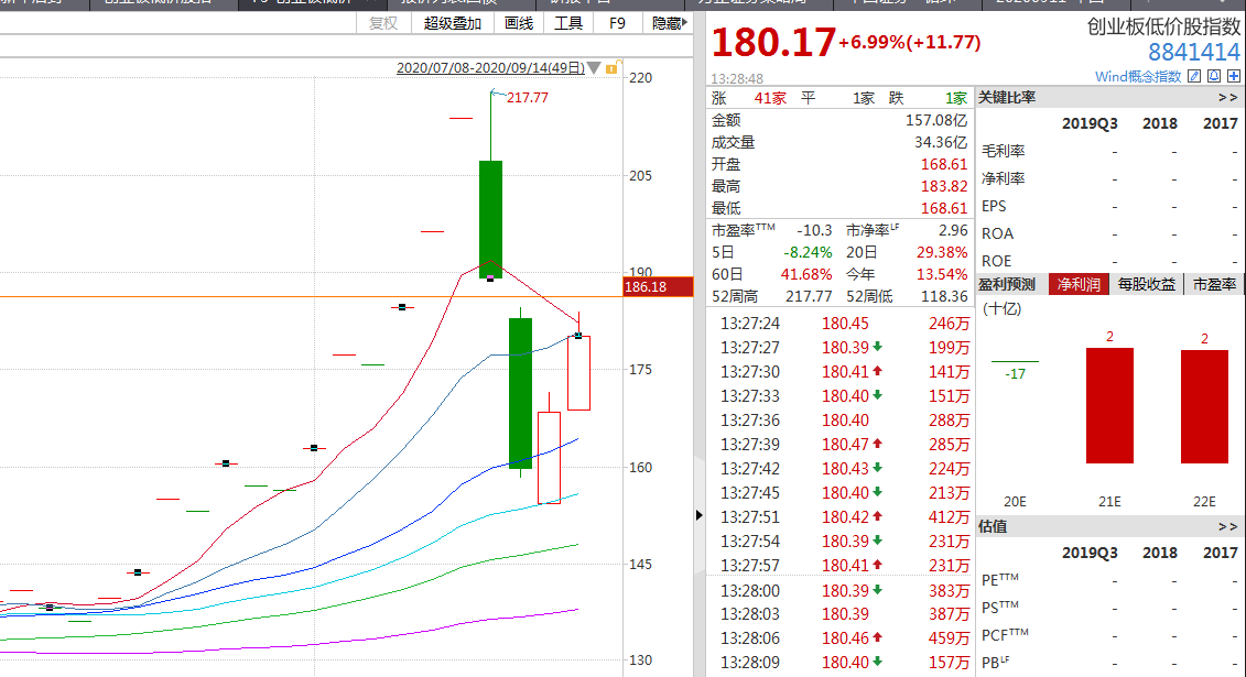 在白马大跌的同时,近期低价股表现较好,尤其是创业板低价股,甚至出现翻倍走势,经过9月9日和9月10日的接连暴跌后,创业板低价股再次反击,上周五大涨5.47%,今日再涨6.99%,明显跑赢同期其它市场指数。