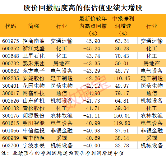 证券时报·数据宝按照以下四个条件,筛选出年内回撤幅度较大且低估值高增长的个股,共15股浮出水面。