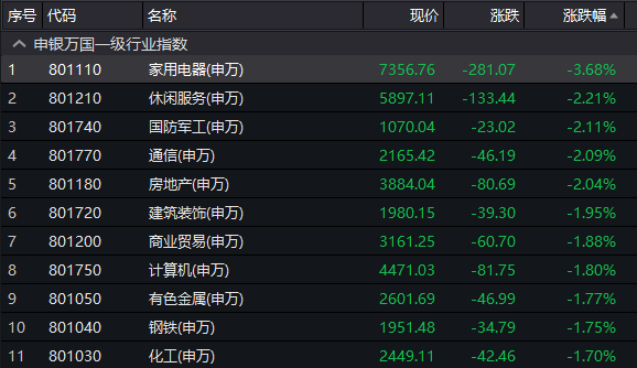 28个申万一级行业指数悉数下跌,其中家电板块跌幅居首,白电双雄格力电器和美的集团更是双双跌逾4%。