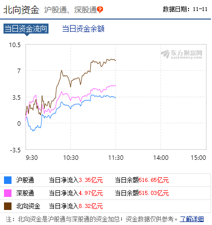 不过,在A股深幅调整之际,市场公认的“聪明资金”——外资却依旧“买买买”。东方财富数据显示,11日上午北向资金净流入额度达到了8.32亿元。