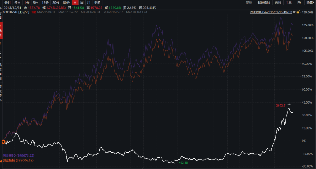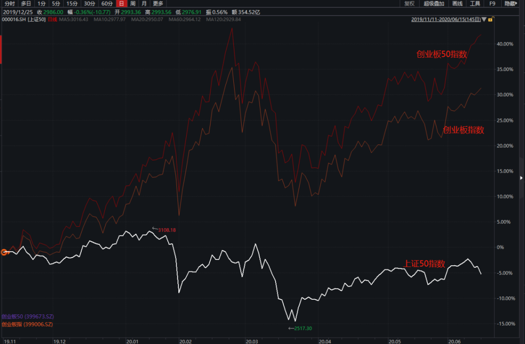 实际上,创业板50指数和上证50指数的分野,仅仅从去年年底才刚刚开始。再往前几年看看,创业板50还在“要命3000”的行列里面呢。早前,市场人士曾调侃,股票分为两类,即“漂亮50”和其余的“要命3000”。