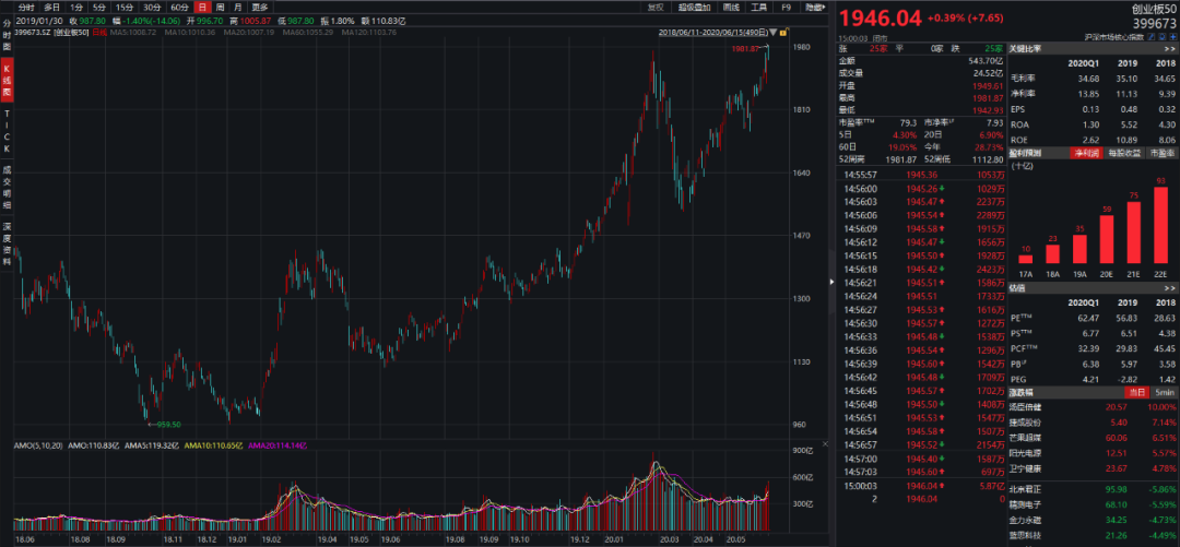 与此同时,创业板50指数在当日盘中一度大涨2.24%,至1981.87点,超过了2月25日的高点,并创出了3年半新高。