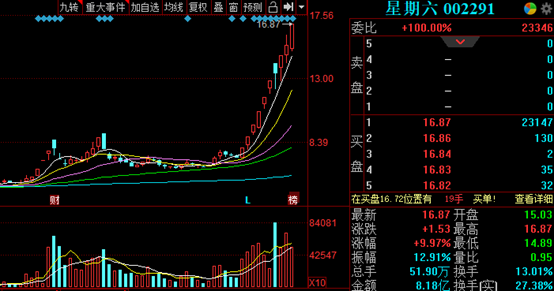 星期六股价从12月13日启动,走出10天8板的行情,累计涨幅已达134.3%。