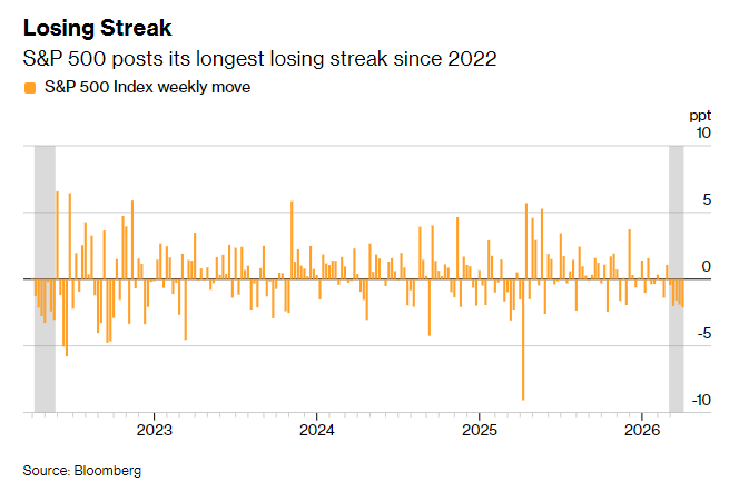 目前,标普500正遭遇2022年以来最糟糕单月表现;纳斯达克100较去年10月历史高点已下跌12%,上周五正式跌破技术性调整阈值。本轮暴跌源于市场担忧:中东战火推高油价,可能扼杀经济增长并重新点燃通胀。