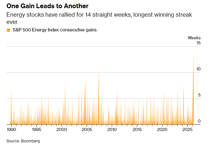 受投资者对经济增长的担忧升温,以及对美联储加息的押注降温影响,美国国债价格走高;美国油价则自2022年以来首次收于每桶100美元上方。能源股已连续14周上涨,创下历史最长连涨纪录。