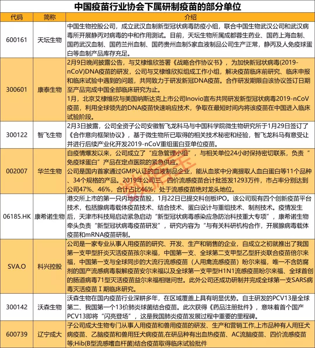 盘前必读!参与新冠肺炎疫苗研制企业全名单