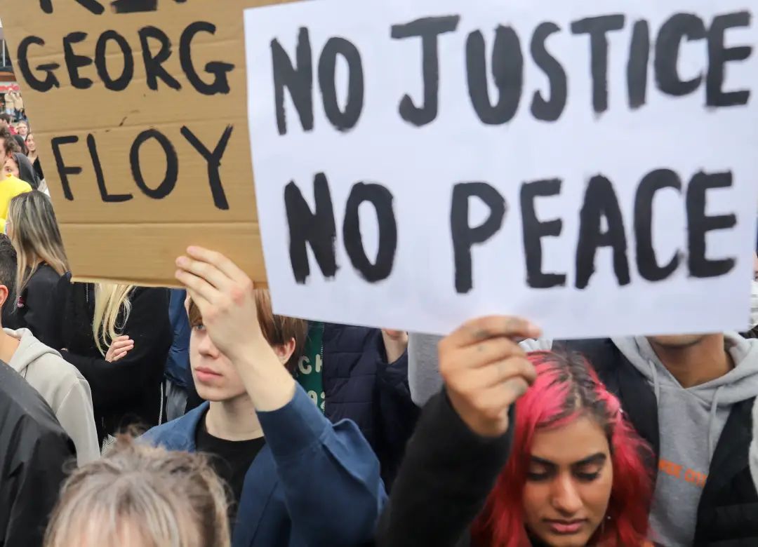 据英国《卫报》6月1日报道,截至当日,新西兰至少发生了四次集会,大量民众在奥克兰跪地示威,并高举“善待他人”“沉默就是背叛”等标语游行到美国大使馆。