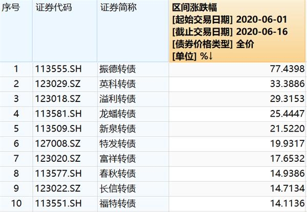 此外,同属抗疫板块的振德转债近来也比较强势。截至16日,振德转债6月以来累计涨幅最高,超77%。