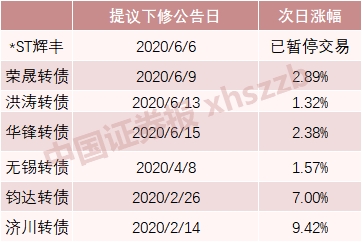 辉丰转债下修显得最为“无奈”。辉丰转债在5月末已经暂停交易,正股也被“戴帽”。6月5日,辉丰转债回售条款被触发,但发行人*ST辉丰表示,回售可能存在资金不足风险。和回售公告同时出炉的还有提议下修公告,公司董事会拟将转股价格下修至4.38元/股,而目前辉丰转债的转股价为7.71元。而在此前,除了因权益分派调整过几次转股价,*ST辉丰从未主动提出下修。
