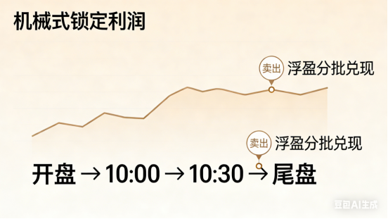 当然也可以根据浮盈的多少,制定在不同时间节点如开盘、十点、十点半、尾盘分批卖出的计划,通过机械式的卖出锁住利润,而不是纠结于是否卖在最高点。