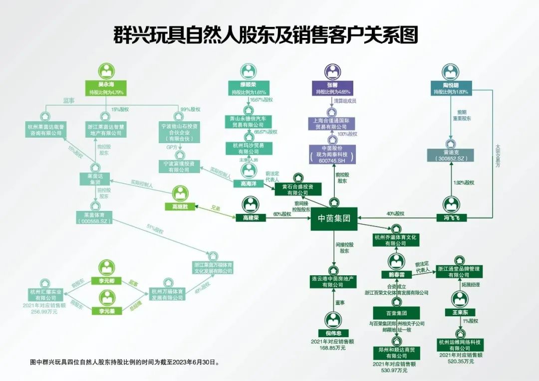 中国证券报记者调查发现,与吴永海、缪顺荣、陶悦明、张馨等自然人股东同名的人士,与“中茵系”关系密切。(详见群兴玩具自然人股东及销售客户关系图)
